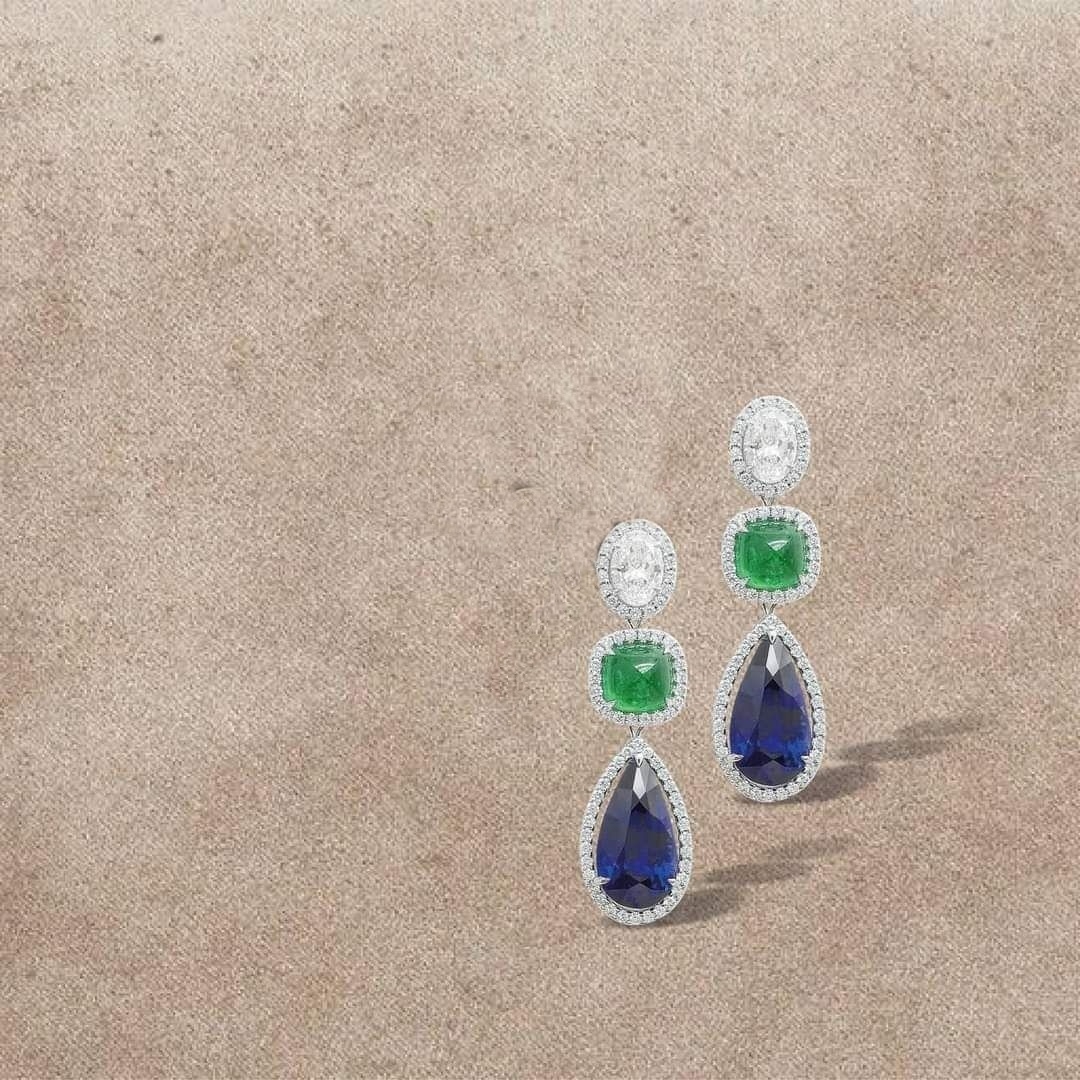 Blue Sapphire Emerald & Emerald Dangling Earrings