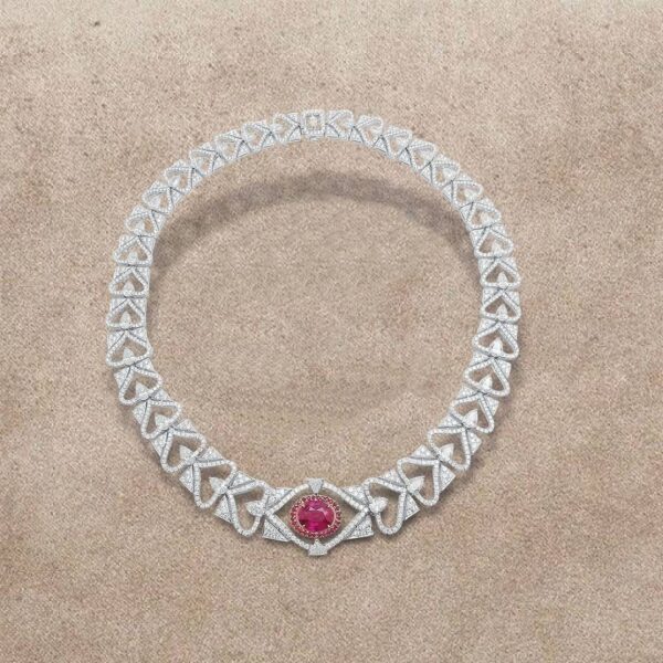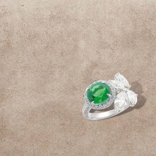 18K WG 12.24 g. with Sugar loaf Cabochon Emerald 2.81 cts. Blue Sapphire 13.05 cts. and diamond 2.90 cts.